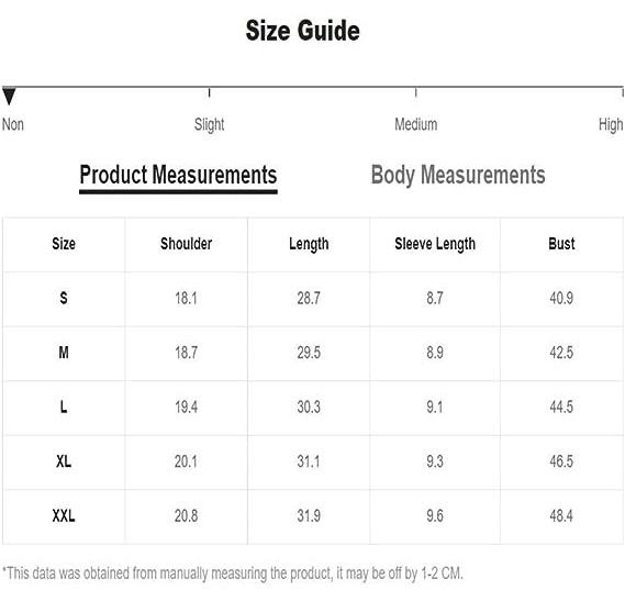 - Bust Size: (Small) 40.9 inch,(Medium) 42.5 inch, (Large) 44.5 inch, (X-Large) 46.5 inch, (XX-Large) 48.4 inch.