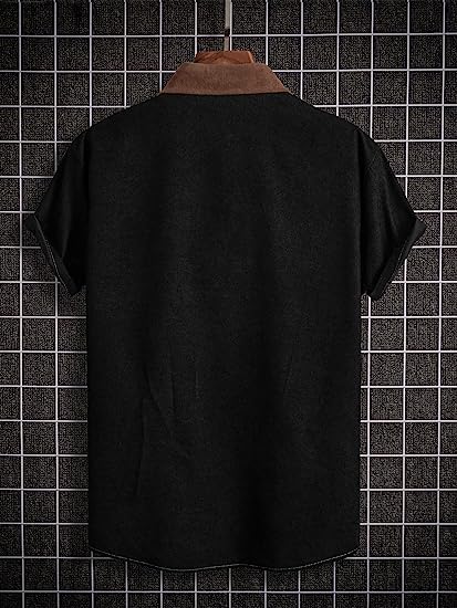 Feature: Color Block, Button Front, Short Sleeve, Collar, Patched Pocket, Regular Fit, Casual.